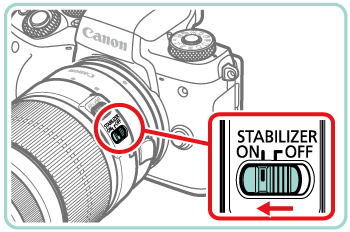 - 內置影像穩定器的鏡頭名稱中包含「IS」。IS 表示影像穩定器。