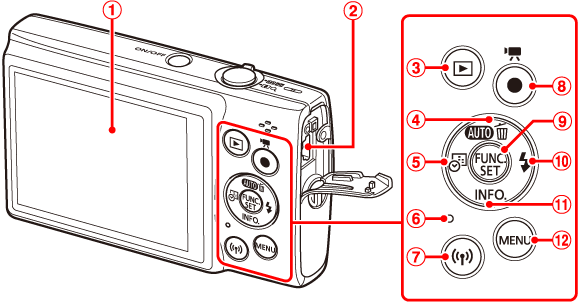 ![]() | (播放) 按鈕 | ![]() | FUNC.(功能) / SET 按鈕 |