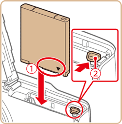沿箭頭方向按壓電池鎖,如圖插入電池,將電池推入直到其喀噠一聲鎖定到位。