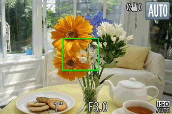 輕按 (半按) 快門按鈕。相機會在對焦後發出兩下嗶聲,並在已對焦的影像範圍上顯示自動對焦框。
