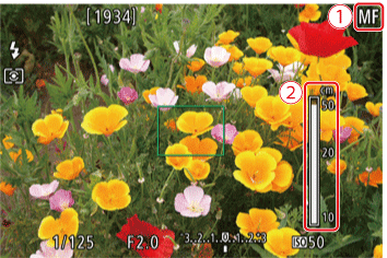 2. 對焦將鎖定並出現 [ MF ] (