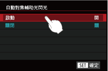 3. 觸摸 [開] 啟用 [自動對焦輔助光閃光]。
