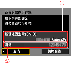 - 檢查顯示在相機液晶螢幕上的 SSID (網路名稱) (