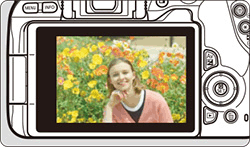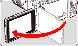 - 在即時顯示拍攝或短片拍攝期間,將液晶螢幕朝向主體將在螢幕上顯示鏡像 (左右顛倒)。