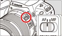 4. 將鏡頭對焦模式開關設為 <AF>。