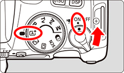 6. 將電源開關置於 <ON>,然後將模式轉盤設定為 <