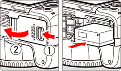 開啟記憶卡插槽/電池倉蓋後,請注意不要過度旋轉該蓋。否則,鉸鏈可能會折斷。