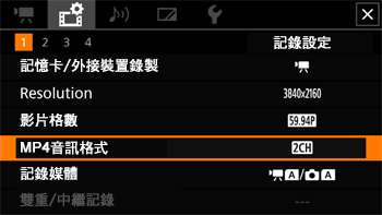 記錄設定 ] -> [MP4音訊格式] 設定為 [