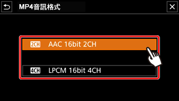 - [LPCM 16bit 4CH] :使用四聲道線性 PCM 記錄片段。此格式未經壓縮,可提供更高的音頻品質。