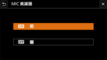 一個音頻頻道設定為內置麥克風/MIC 端子時,可以為連接至 MIC 端子的外置麥克風啟動麥克風衰減器 (20 dB),以防止聲音音量過高時的音頻失真。