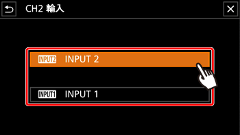 - [INPUT2] :將音頻分別記錄至各頻道。輸入至 INPUT 1 的音頻記錄至 CH1,輸入至 INPUT 2 的音頻記錄至 CH2。