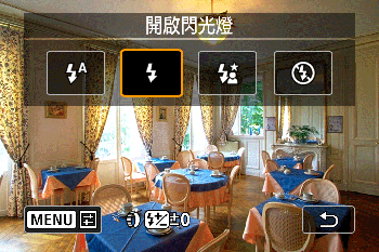 ] 會閃爍。請參閱以下內容以避免相機抖動。- 將閃光燈設定為 [