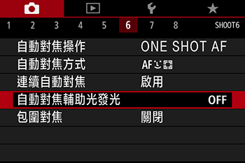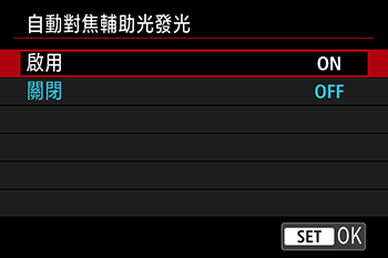 按鈕選擇 [自動對焦輔助光發光],然後按下