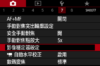 - 將 [影像穩定器模式] 設定為 [開啟]。
