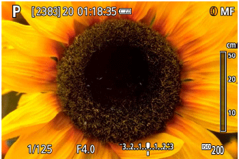 按鈕。對焦將鎖定並出現 [ MF ] 和手動對焦指示器。