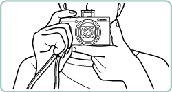 - 拍攝時,手臂緊靠身體,牢固握持相機以防止其移動。如果已升起閃光燈,請勿將手指停留於閃光燈。