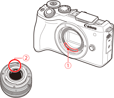 - 如果使用 EF 或 EF-S 鏡頭,請牢固安裝鏡頭轉接器 EF-EOS M。