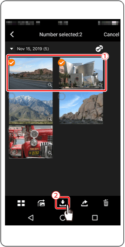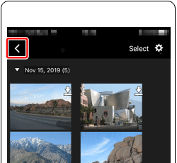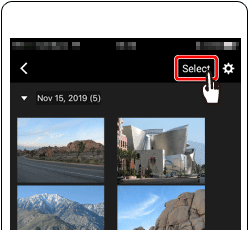 21. 使用智能手機從相機將影像匯入至智能手機。- 觸摸螢幕右上方的 [選擇 (Select)]。