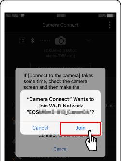 20. 變更為 Wi-Fi 連接。- 顯示以下畫面時,輕觸 [加入 (Join)]。