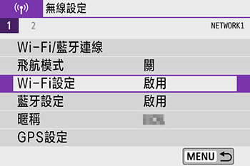 如果 [Wi-Fi] 設定選為 [關閉],請將設定變更為 [啟用]。