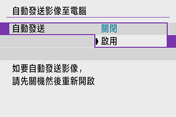 > 選擇 [自動發送影像至電腦],然後按 <